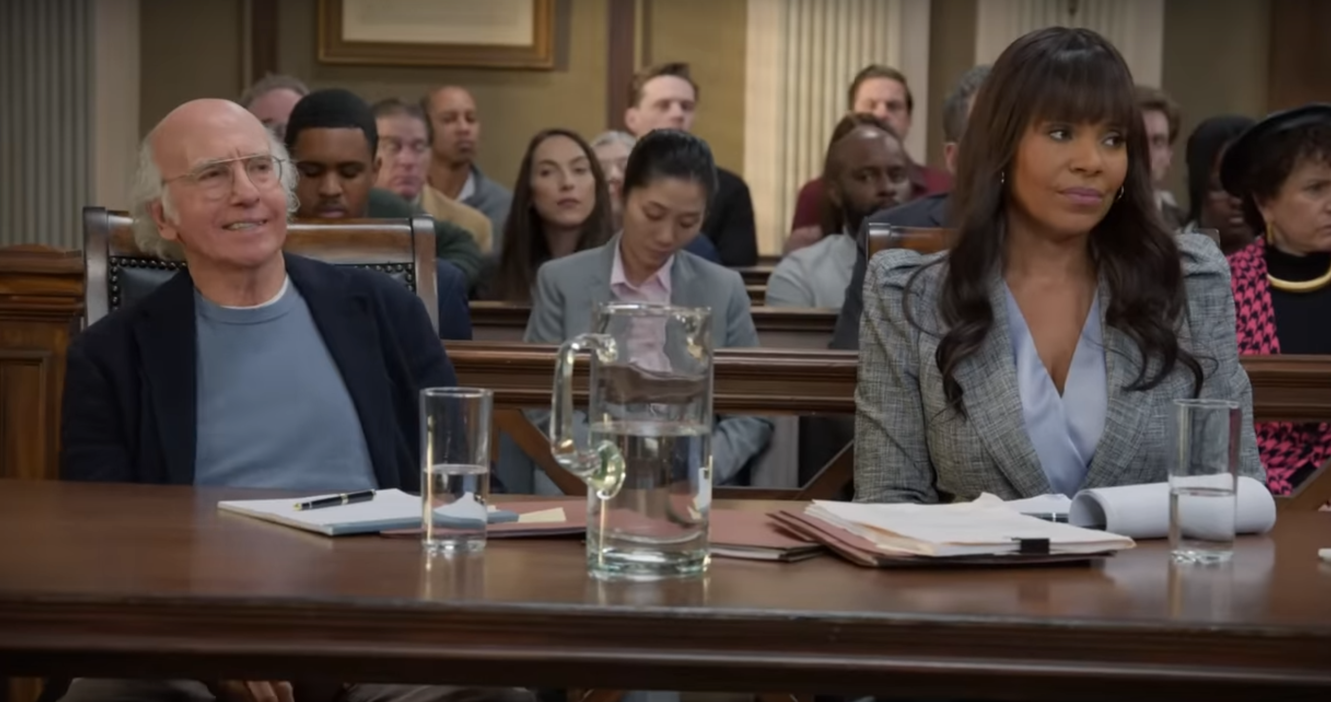 But what begins as a battle against an unfair law, in both Larry's world and ours, takes a turn when the prosecution calls witnesses to speak to Larry's character. Er, lack thereof. What follows is a line of characters stretching as far back as season one, all of whom Larry has somehow wronged.