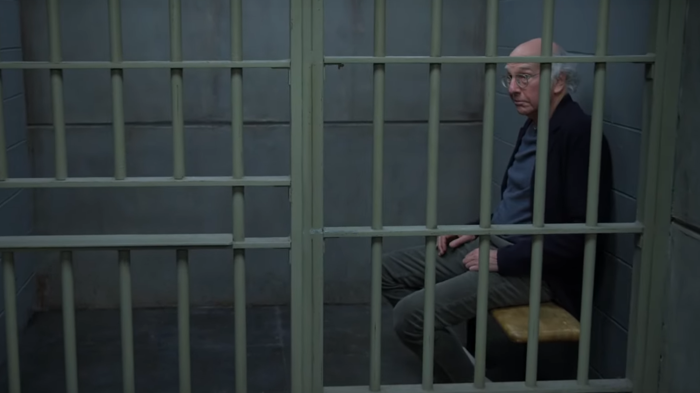 Faced with Larry's history, the jury goes into deliberation and comes back with a not-so-shocking verdict. Larry is guilty, they've found. The scene cuts and we catch up with Larry behind bars, mirroring the controversial finale of his brainchild, Seinfeld. But just as we think the two finales are about to match perfectly, his cocreator appears.