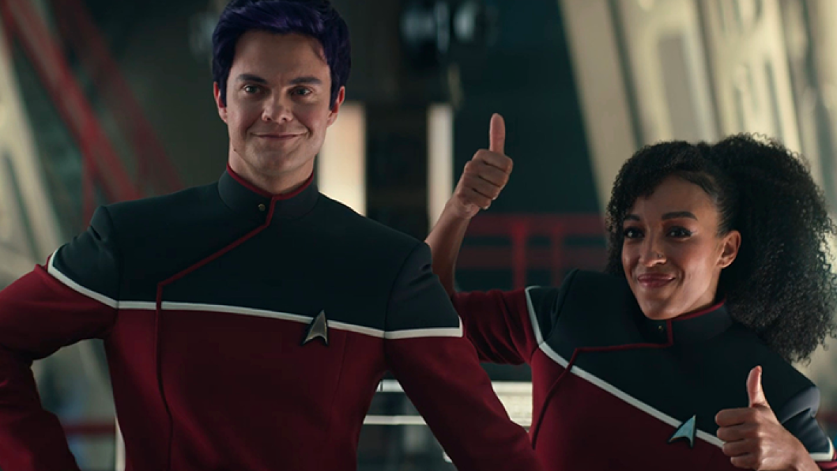 For a while, Goldsman and his co-showrunner Henry Alonso Myers imagined a crossover that would be entirely animated. But as it turned out, one of Strange New Worlds’ writers also wrote on Jack Quaid’s live action Prime Video show The Boys, and another knew Lower Decks very well. So they came up instead with the idea of bringing Quaid and Tawny Newsome’s Lower Decks characters to the live-action world of Strange New Worlds.