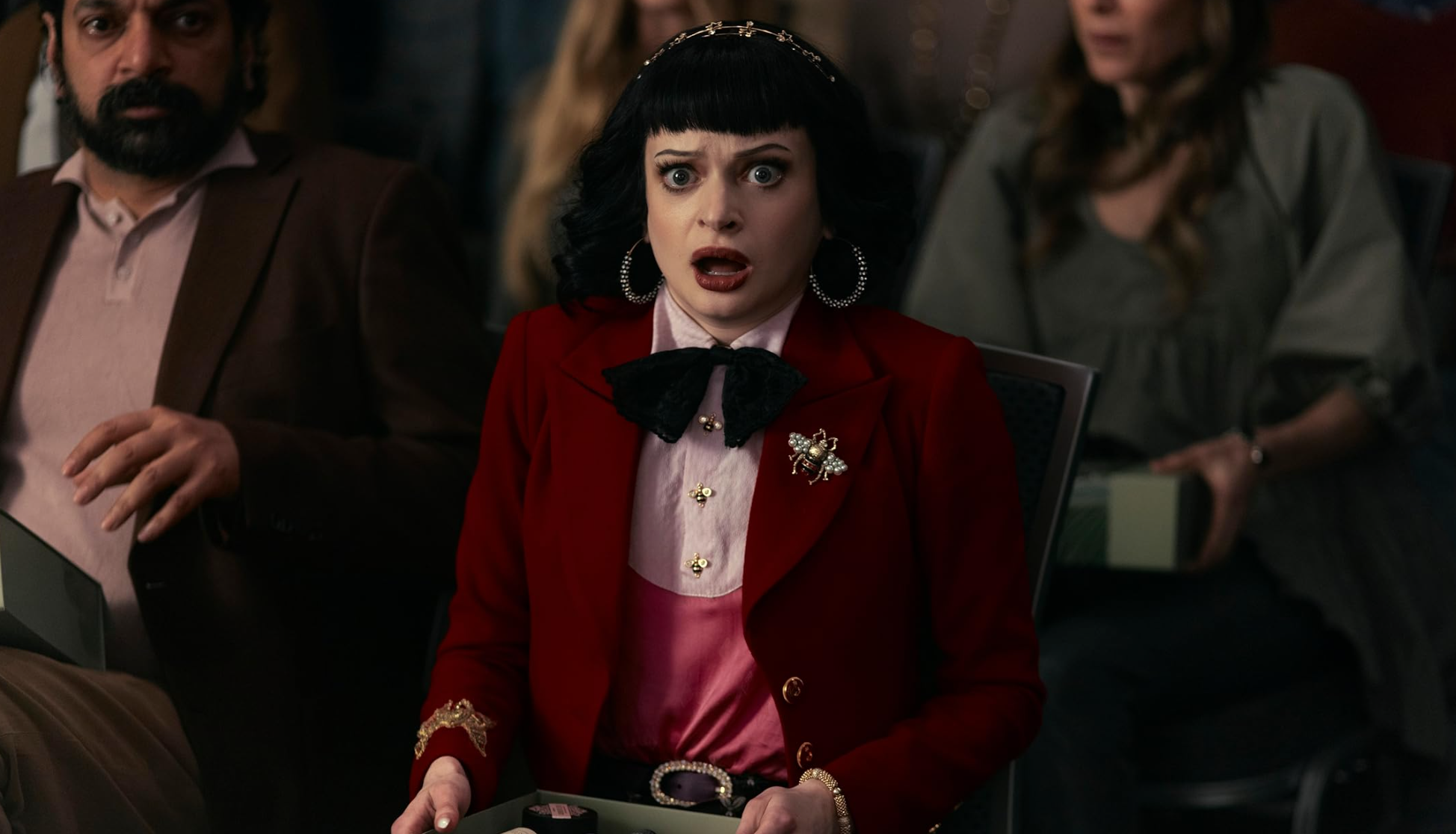 Back to the past, Roderick and Madeline are at a different bar, celebrating their criminal masterstroke and establishing an alibi for the eventualy investigation into Griswold's disappearance. It's at this second bar that they meet a friendly bartender that takes an interest in the ruthless and ambitious twins. This character, played by Carla Gugino and mostly unnamed in the show, is credited as "Verna." At first, the two treat her as another alibi, but then the truth comes out: she knows all about Griswold's murder, down to the details of the coverup. But Verna's not there to report them. No, she's there to help them get away with it.